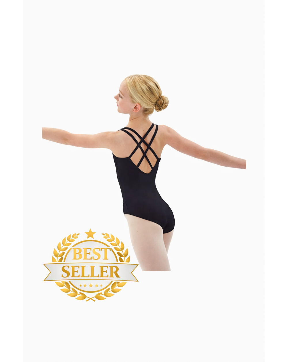 Sa coupe camisole avec encolure dégagée met en valeur une silhouette gracieuse, tandis que les bretelles doubles croisées au dos ajoutent une touche délicate et originale. Entièrement doublé à l’avant dans les tailles enfants pour plus de modestie, ce justaucorps assure un maintien agréable tout au long de la journée d’entraînement.